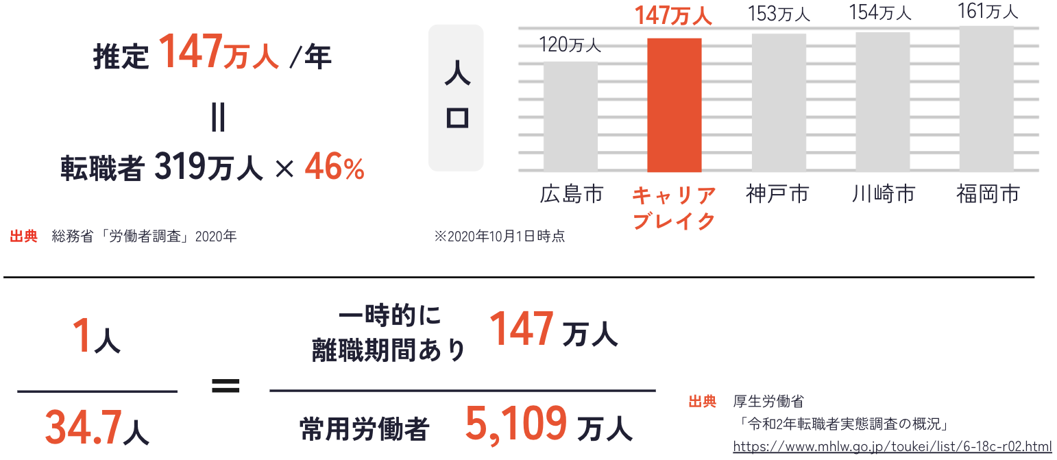 2022年の厚生労働省の調査によると、日本国内では年間147万人の方が1ヵ月以上の離職期間を過ごしたのちに再就職をしています。