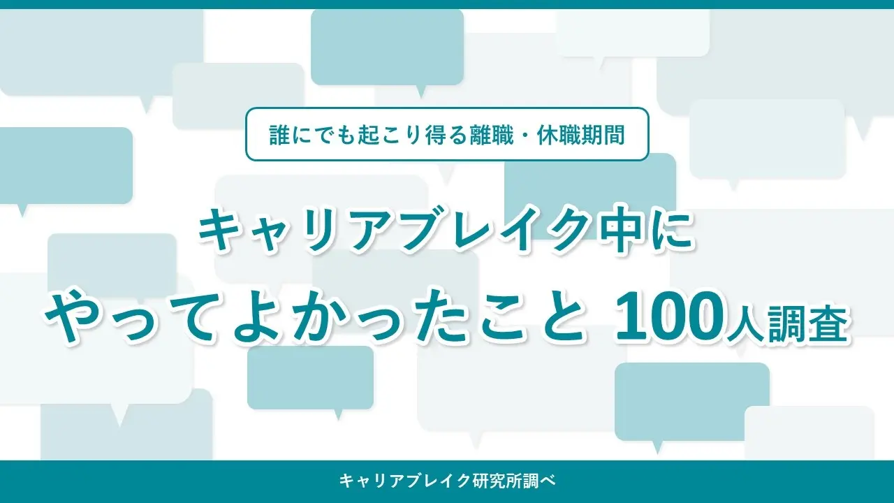 離職や休職を経験した人に「キャリアブレイク中にやってよかったこと」を調査。103人から集めた293の「よかったこと」の回答をレポートとして発表しました。...
