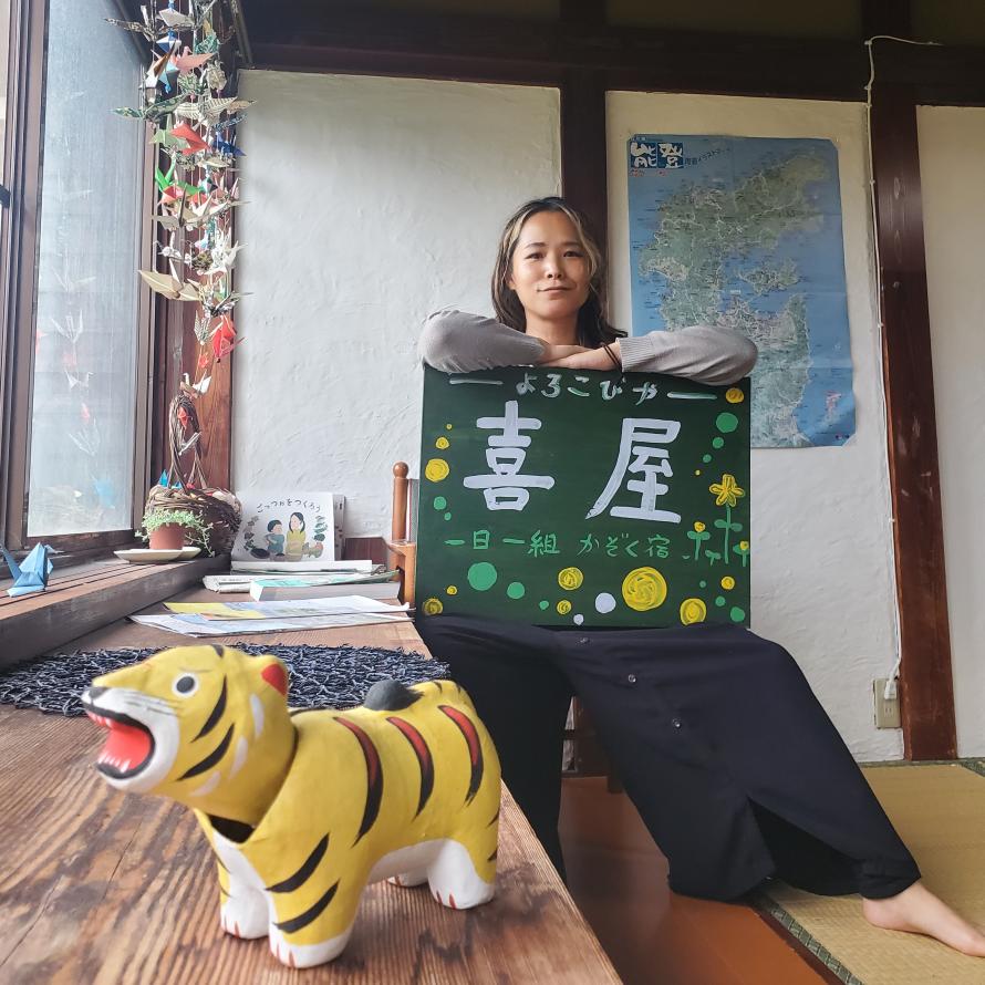 埼玉県出身。県内企業に就職し、結婚を機に退職。2011年、夫の転勤により移住した福島県で東日本大震災に遭遇する。長男出産をきっかけに子育て支援のNPO団体のスタッフとして働くように。転勤が続く夫と相談し「子どもたちのふるさとづくり」を決意。2018年に石川県中能登町の「地域おこし協力隊」となって、町内の古民家に長男・次男とともに移住。2020年、古民家民宿「喜屋」をオープン。現在は地域の特産物を使ったランチや弁当販売を手掛け、移住セミナーの講師としても活動している。
